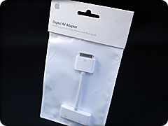 「Apple 30ピンDigital AVアダプタ」は、iPhone 4と第4世代iPod touch、初代iPadにも対応しています。 |