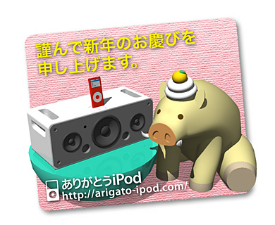 亥年新年用 (2007年1月) 3Dソフトで作ってみました。 「His Master's Voice」みたいなことに。