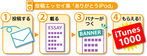 応募方法など詳しくは、投稿エッセイ集「ありがとうiPod」をご覧ください。