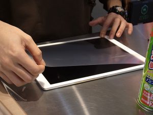店頭では、購入した保護フィルムの貼り付けサービスも受けることができます。