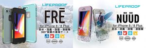 LifeProofの防水ケースには、画面が透明フィルムで覆われた「fre」タイプと、画面がカバーされていない「nuud」タイプがあります。