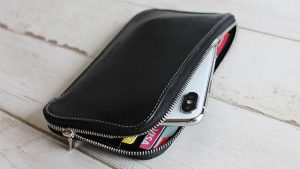 昨年発売された「Lファス スマホ ウォレット ケース」に続く、L型ファスナーで開閉する革製ポーチです。