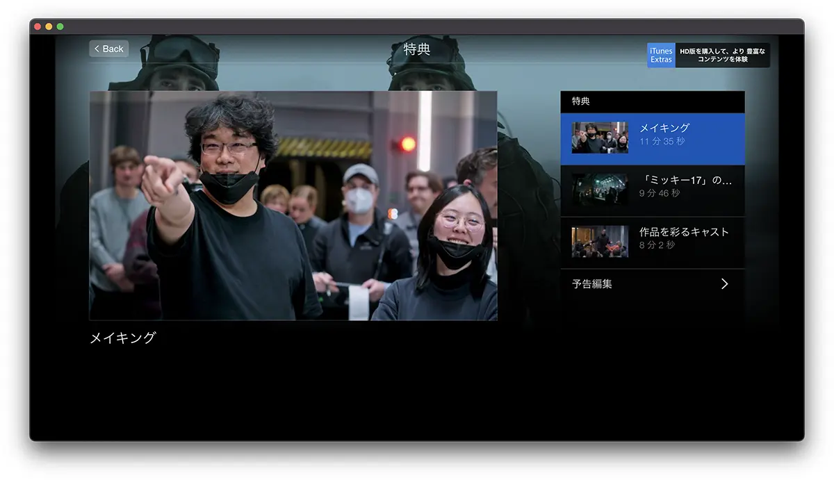 販売版はボーナスコンテンツが付属するiTunes Extras仕様です。