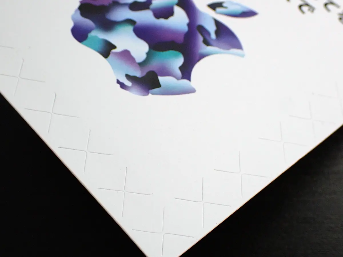 従来(写真右)は封筒にAppleマーク型の型抜きがされていて、中のステッカーのデザインが見えるスタイルでした。