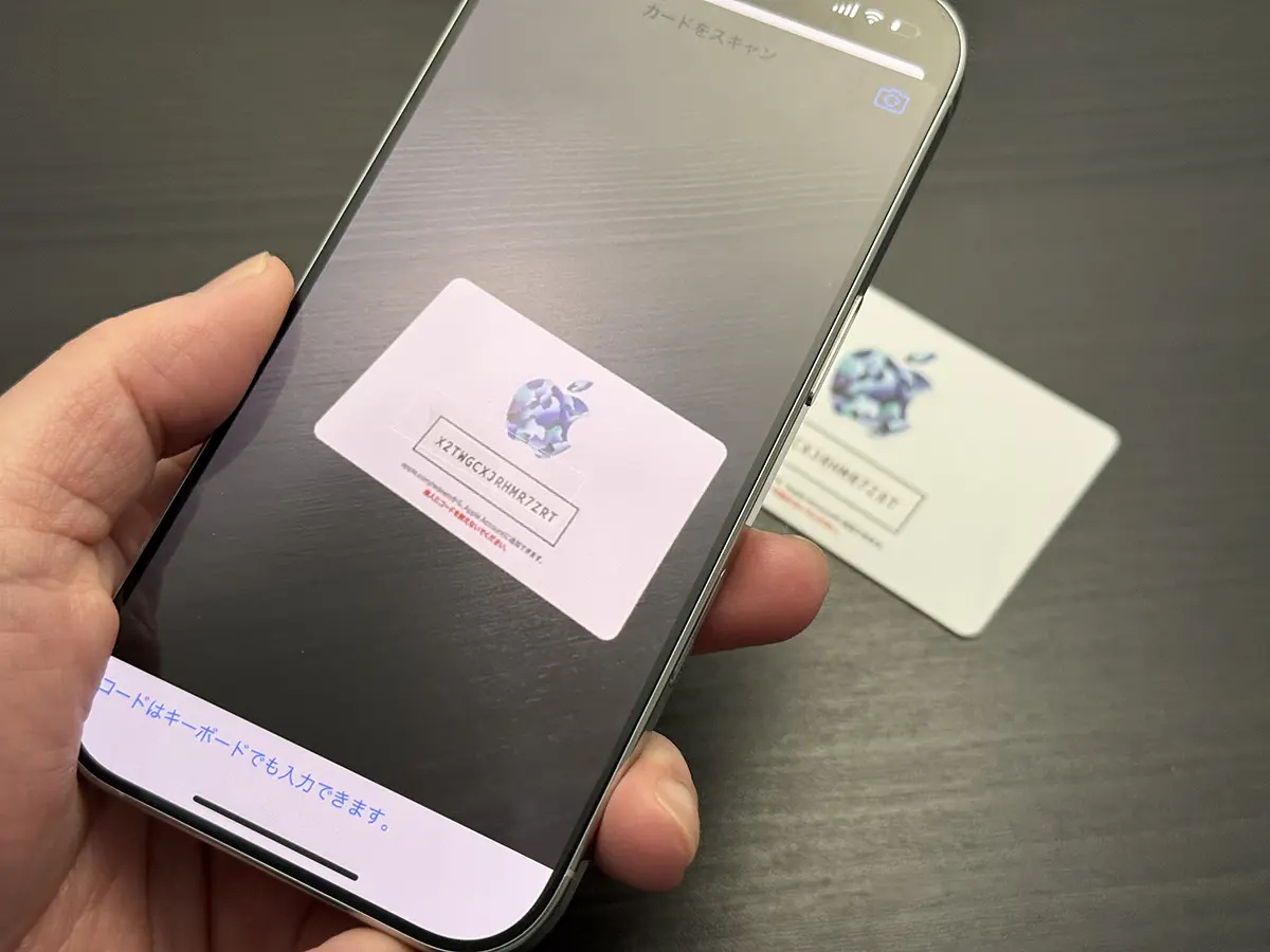 App Storeアプリなどで「ギフトカードまたはコードを使う」から、iPhoneのカメラでスキャンするのが簡単です。