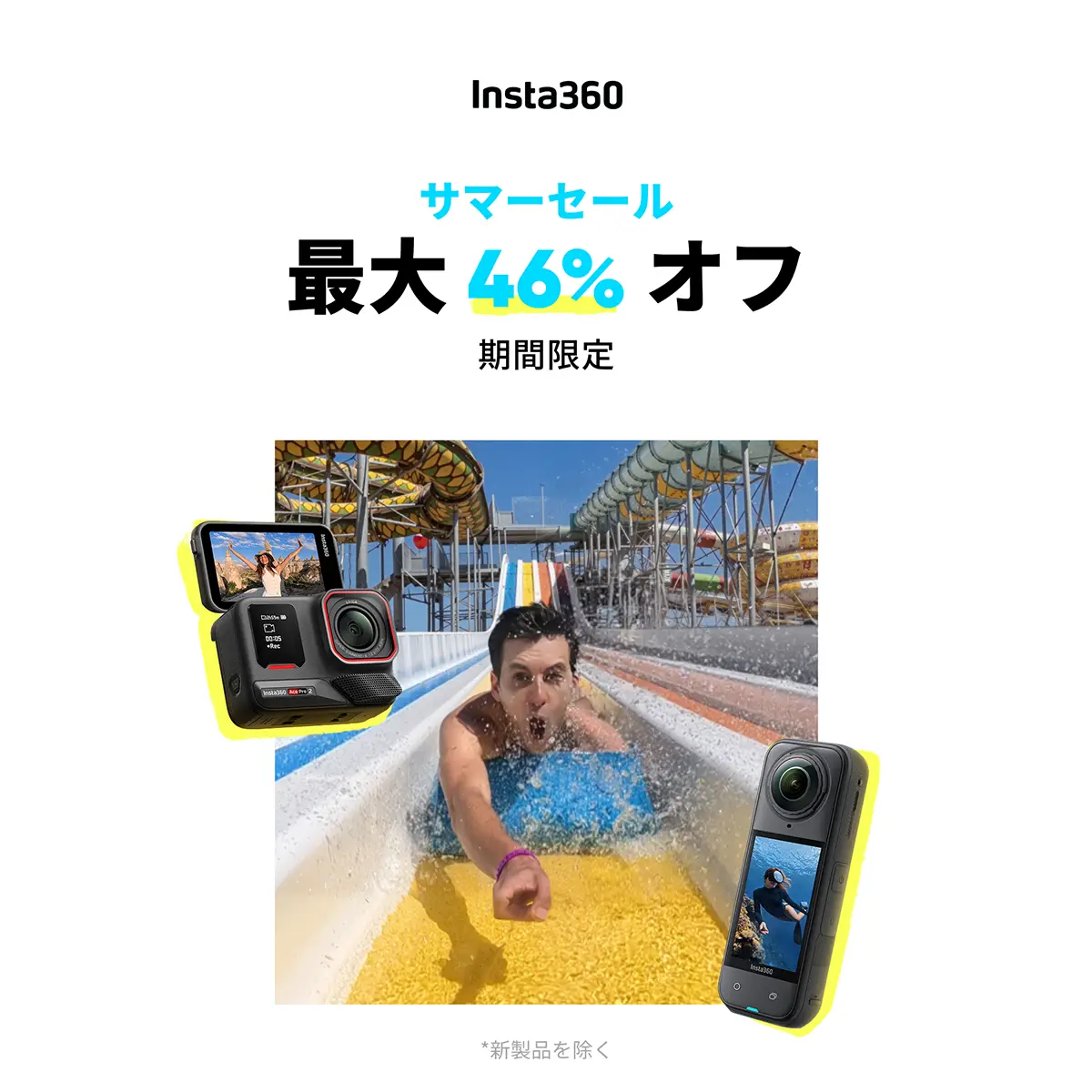 一例として、360度カメラのミドルレンジモデル「Insta360 X4」(通常79,800円)は、28%オフの57,400円になっています。