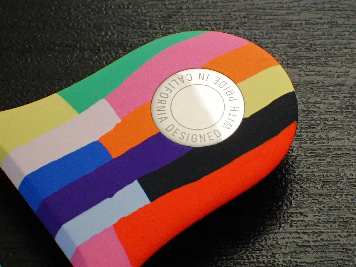 ▲ ピンの内側には、“Designed with pride in California(カリフォルニアから、プライドを込めて)” とメッセージが刻印されています。