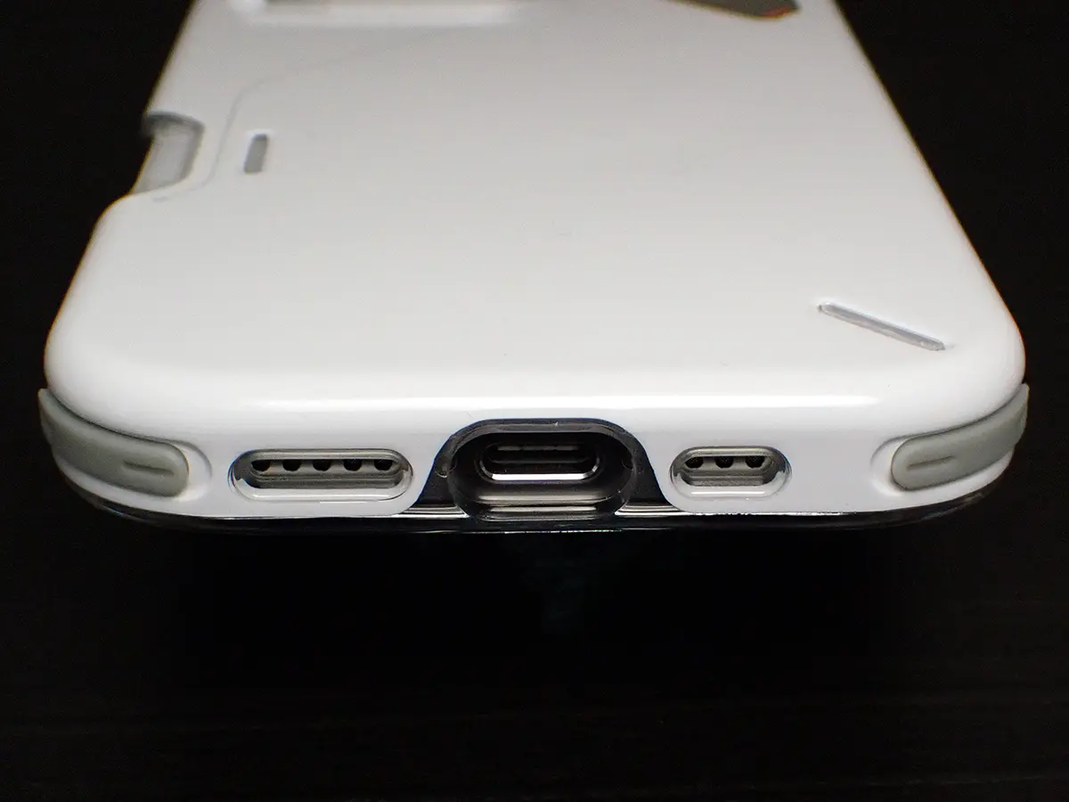 ▲ USB-C端子の開口部は、広くはありませんが、一般的な太さのケーブルなら干渉することはないでしょう。