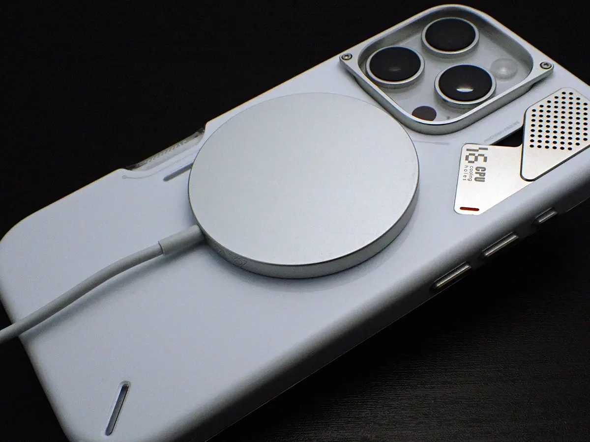 ▲ 内側の熱伝導性シリコンガスケットでiPhoneの熱を吸収し、外側のアルミ合金フレームで放熱します。