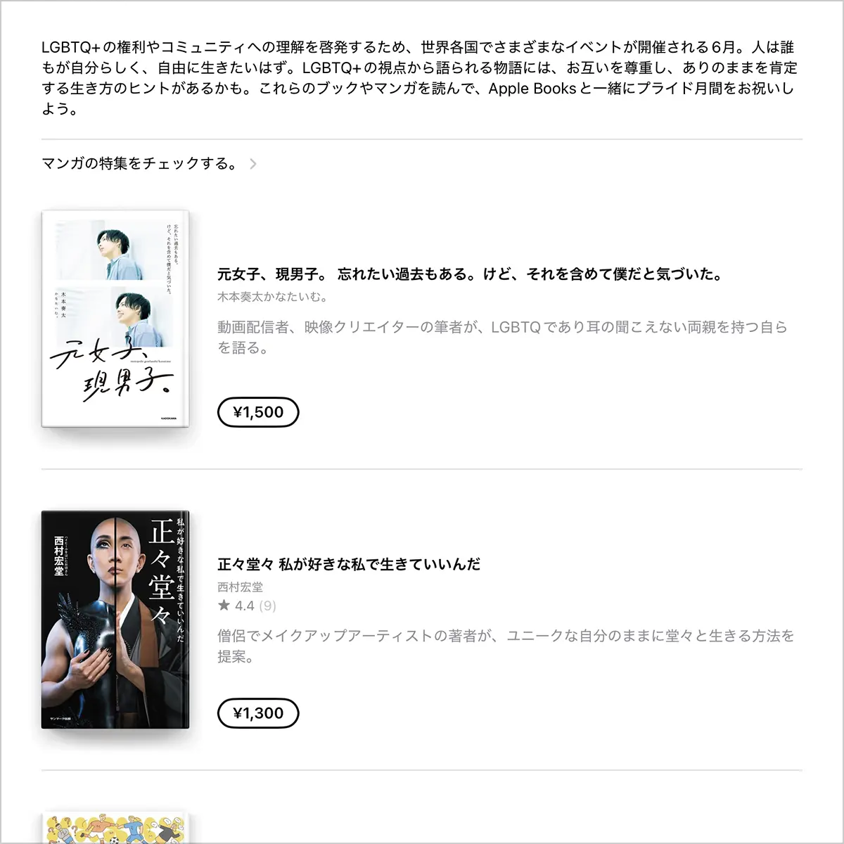 Apple Books Storeで6月のプライド月間に合わせた特集が公開されています。