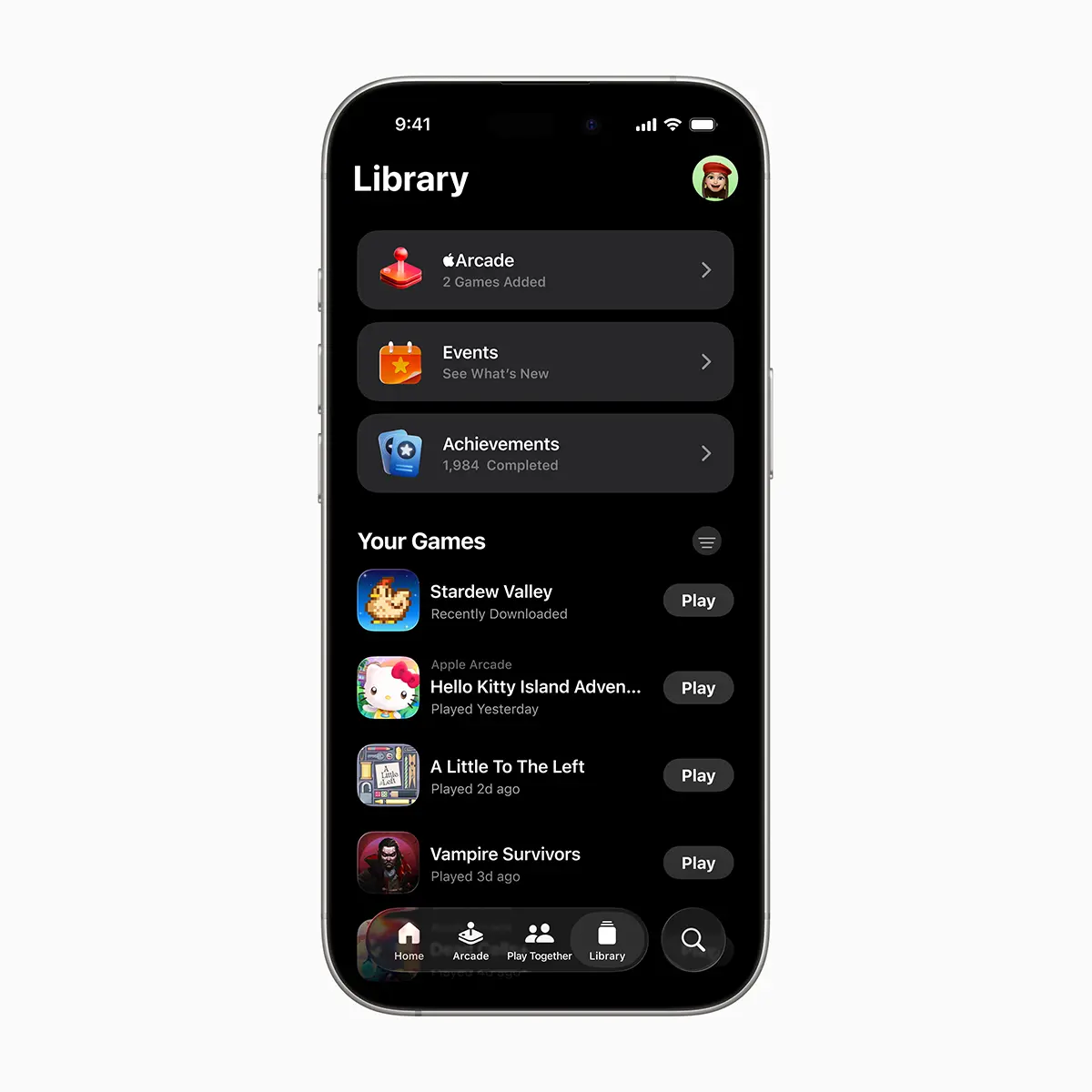 これまでにApp StoreからダウンロードしたことがあるiPhone/iPadのゲームや、Macにインストールされているゲームを、ライブラリとして一覧表示し、素早くプレイできます。