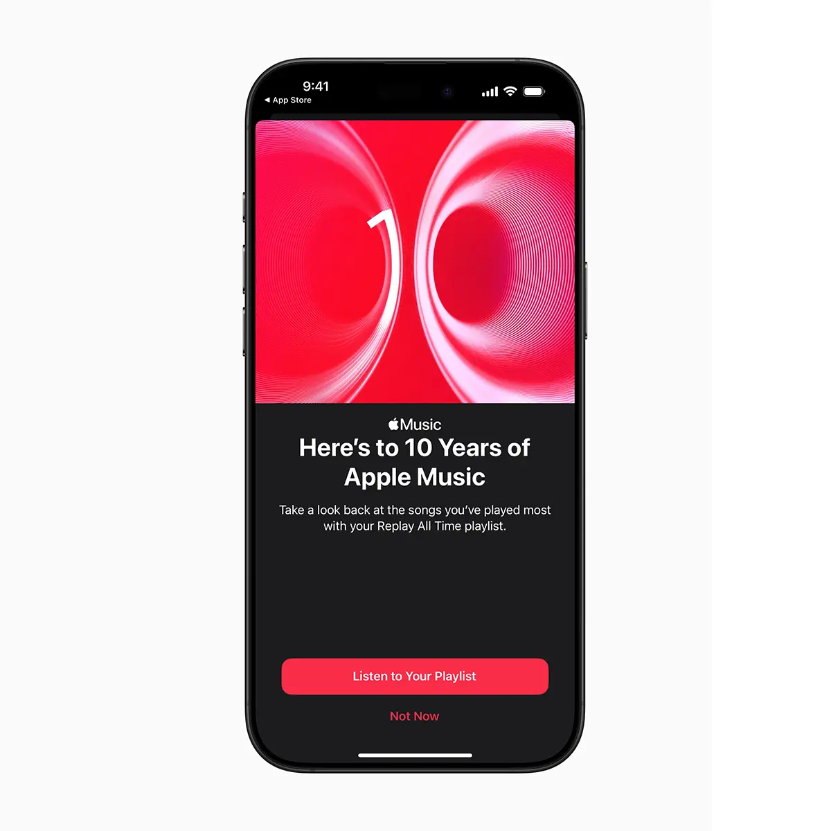 Appleは10周年に合わせて、ロサンゼルスにオープンする新しいスタジオや、10周年を記念したラジオ番組、ユーザーが10年間で聴いた曲を振り返られる「リプレイ:オールタイム」プレイリストなどを発表しています。