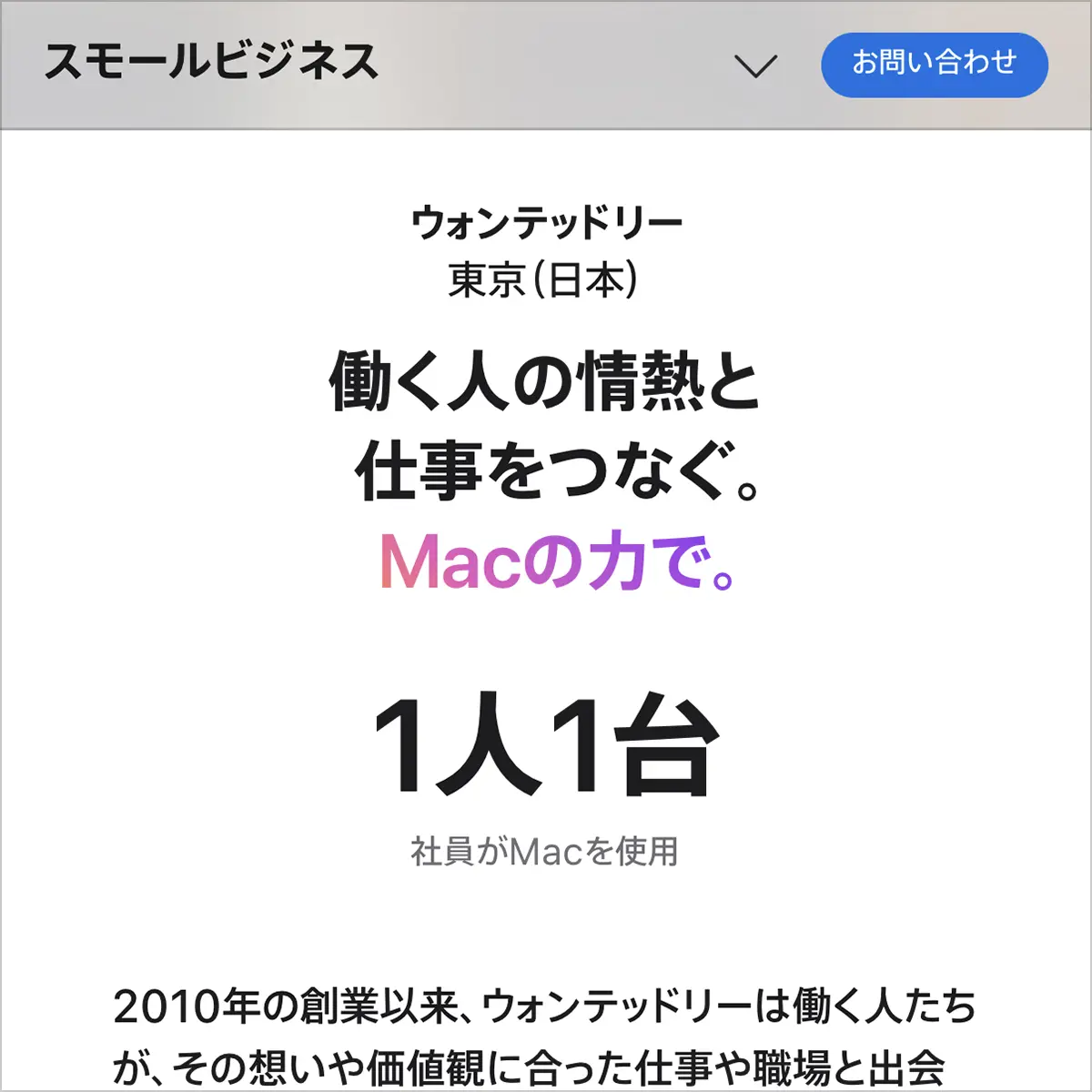 公開ページ:ウォンテッドリー – スモールビジネスの成功事例 – Apple