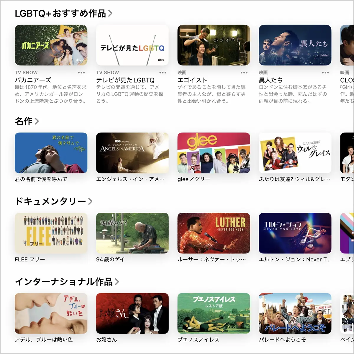Apple TVアプリで、6月のプライド月間に合わせた特集ページが公開されています。