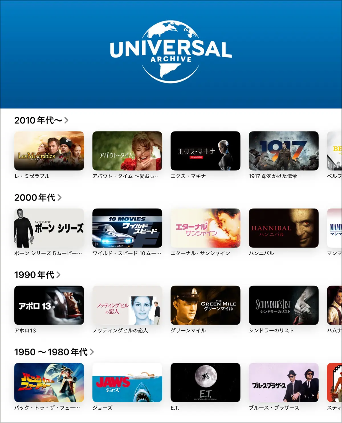 Apple TVアプリでユニバーサル映画の特価セールが実施されています。