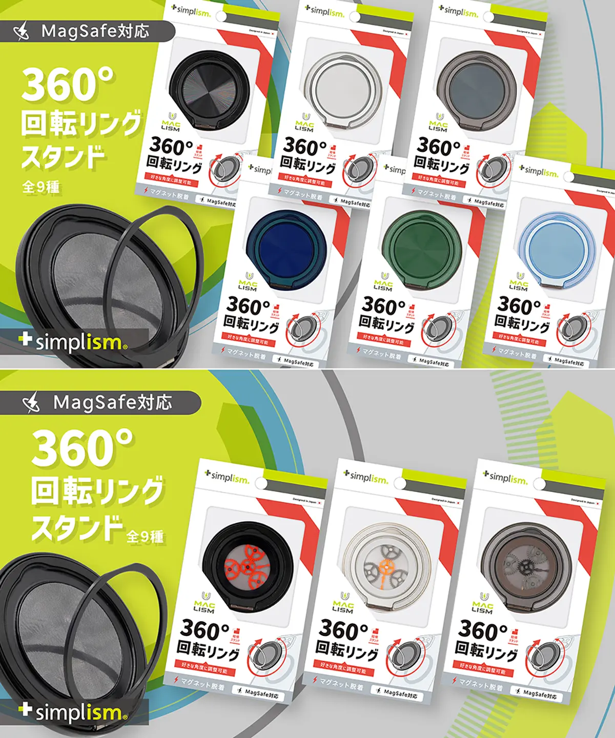 トリニティのSimplismブランドから、「[MagRound] MagSafe対応 360度回転リングスタンド」が発売されています。
