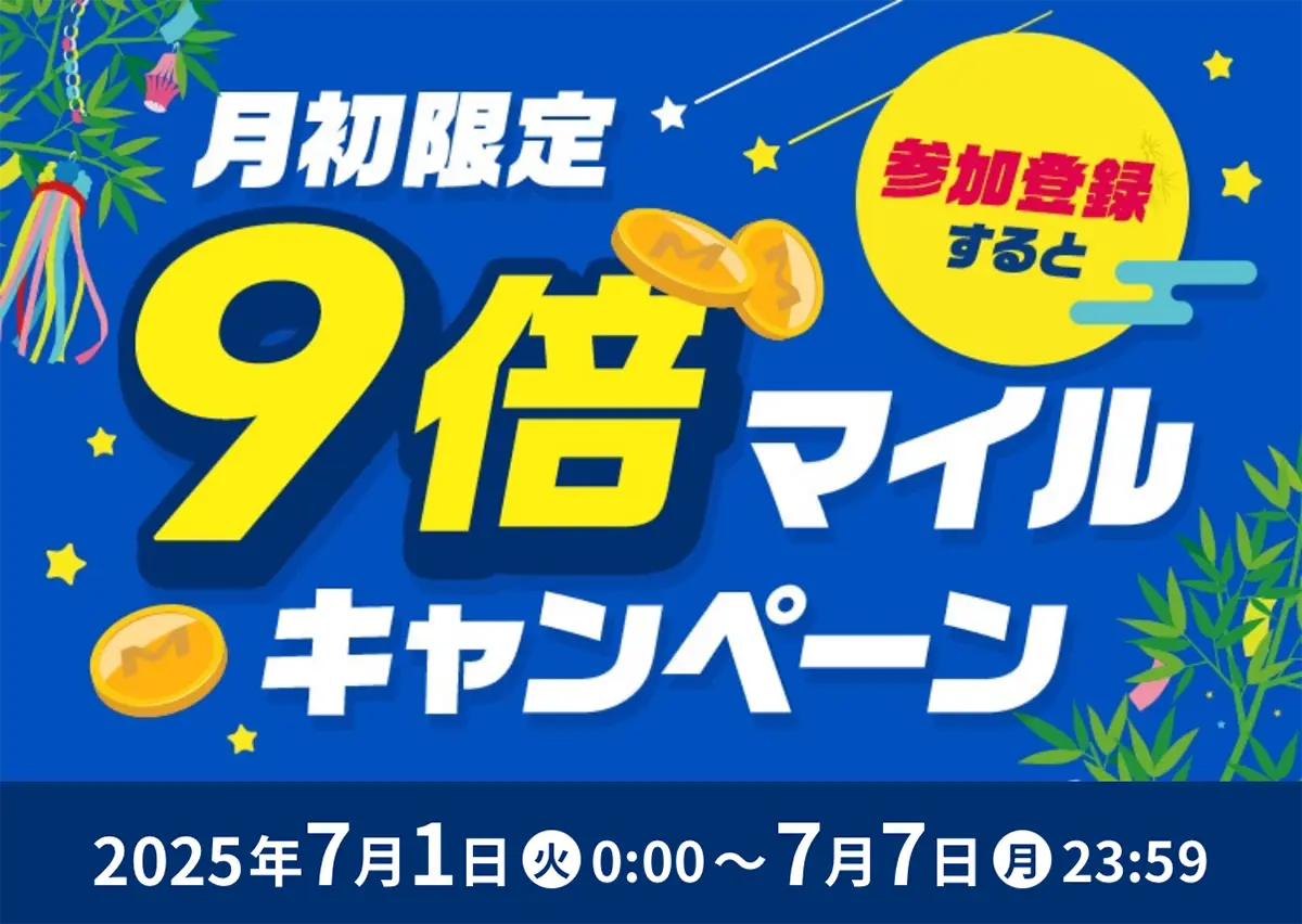 ANA Mallでは月初限定のマイル9倍キャンペーンも、7月7日(月)23:59まで実施中です(要参加登録)。