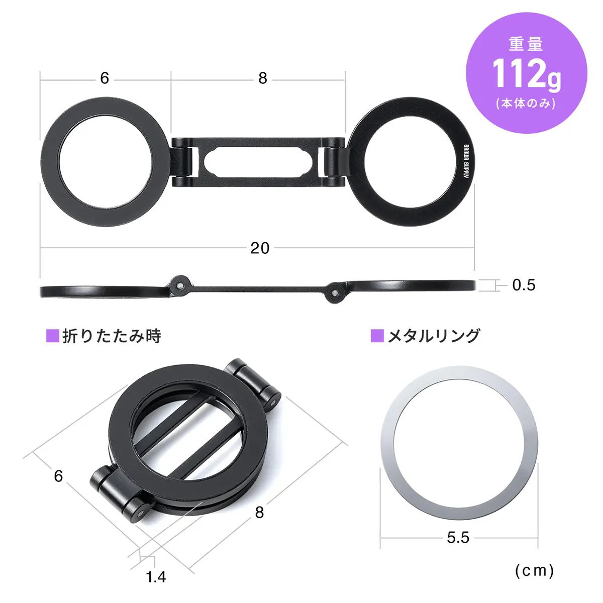 MagSafeに対応していないデバイスやケースにも使えるようにする、メタルリングが付属しています。