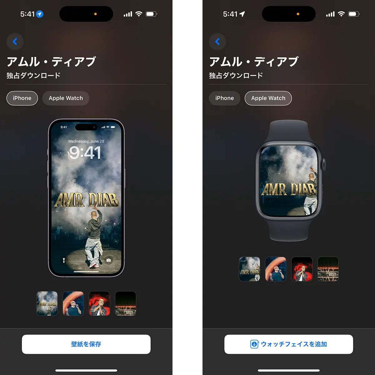 iPhone用壁紙とApple Watch用文字盤が、各4種類ダウンロードできます。
