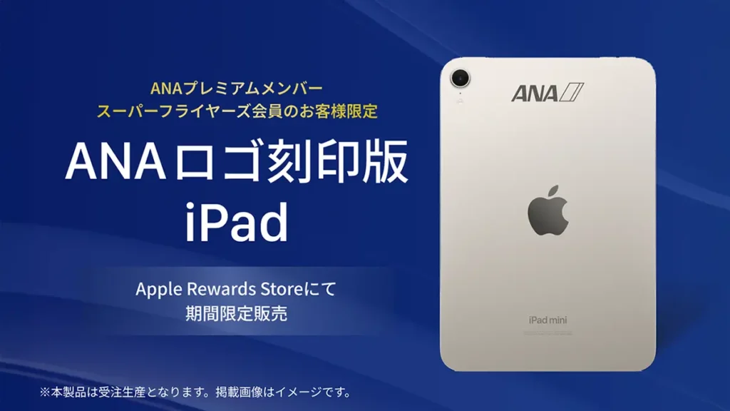 ANAロゴ刻印版iPadを、プレミアムメンバーとスーパーフライヤーズ会員限定・期間限定で販売。ANA MallのApple Rewards Storeで