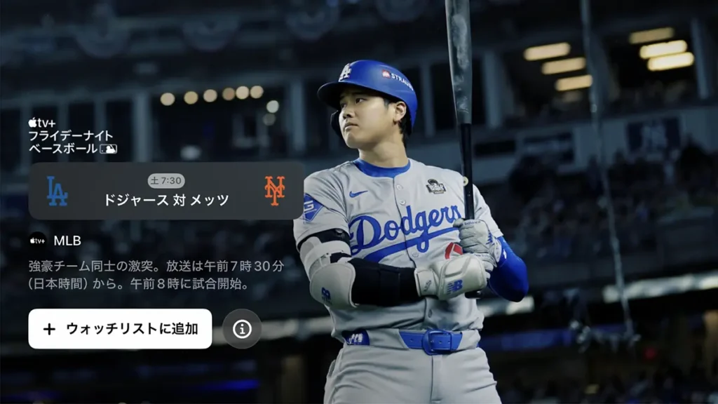 Apple TV+「フライデーナイト ベースボール」で、ドジャース対メッツの試合を5月24日(土)にライブ配信